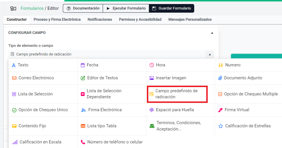 3. **Formularios electrónicos - Campo Predefinido de Radicación.**&#x20;