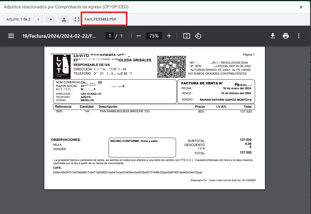 * Comprobante de egreso (CP/OP/CEG)