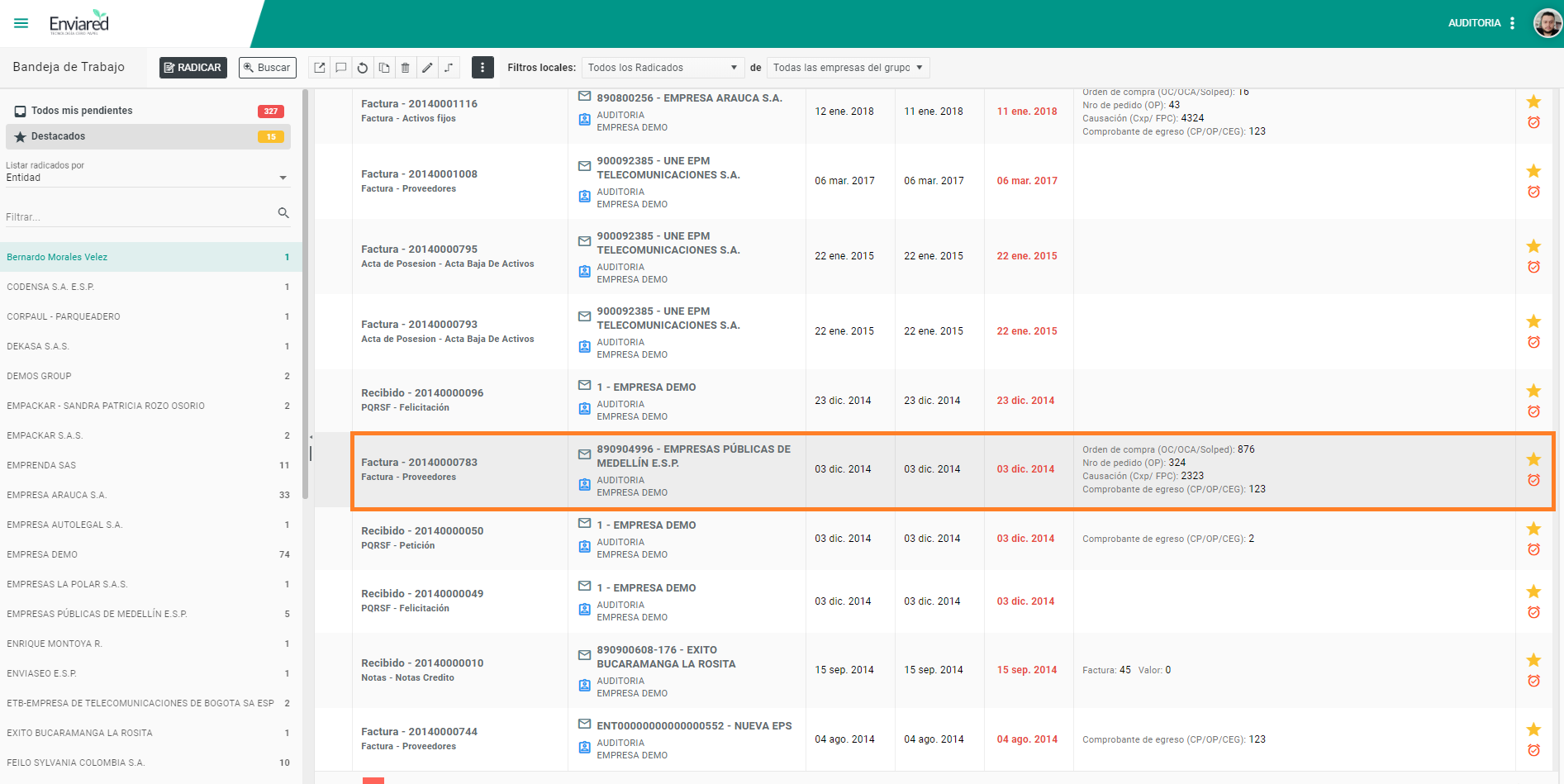 Los documentos destacados, saldrán en su bandeja de trabajo, incluyendo el de nuestro ejemplo.