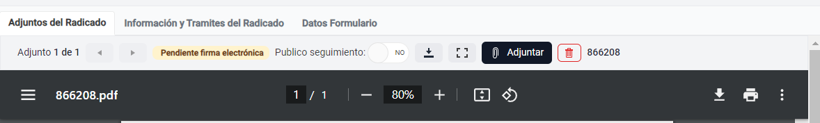 Listo, una vez se complete la firma del documento, saldra en el mismo radicado.